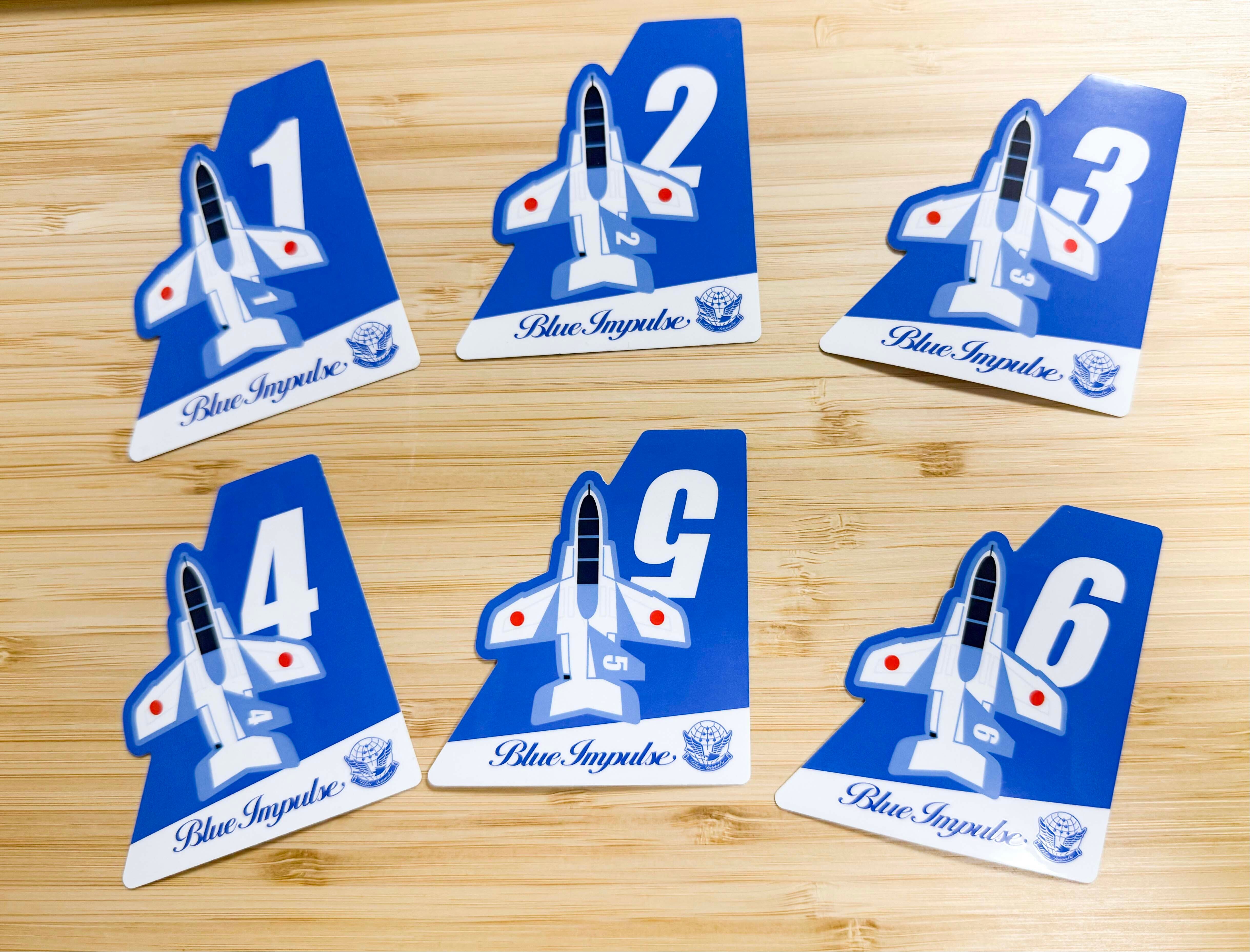 ブルーインパルスの推しのための推しによる全力応援しーる! 撥水ラミネート加工、UV加工のステッカーです。 推しの番機をお選びください!